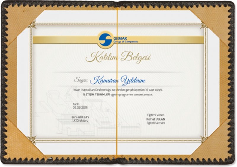 • Sertifika ve Menü Kabı Ebat: 18.5x26 / 15x22 cm